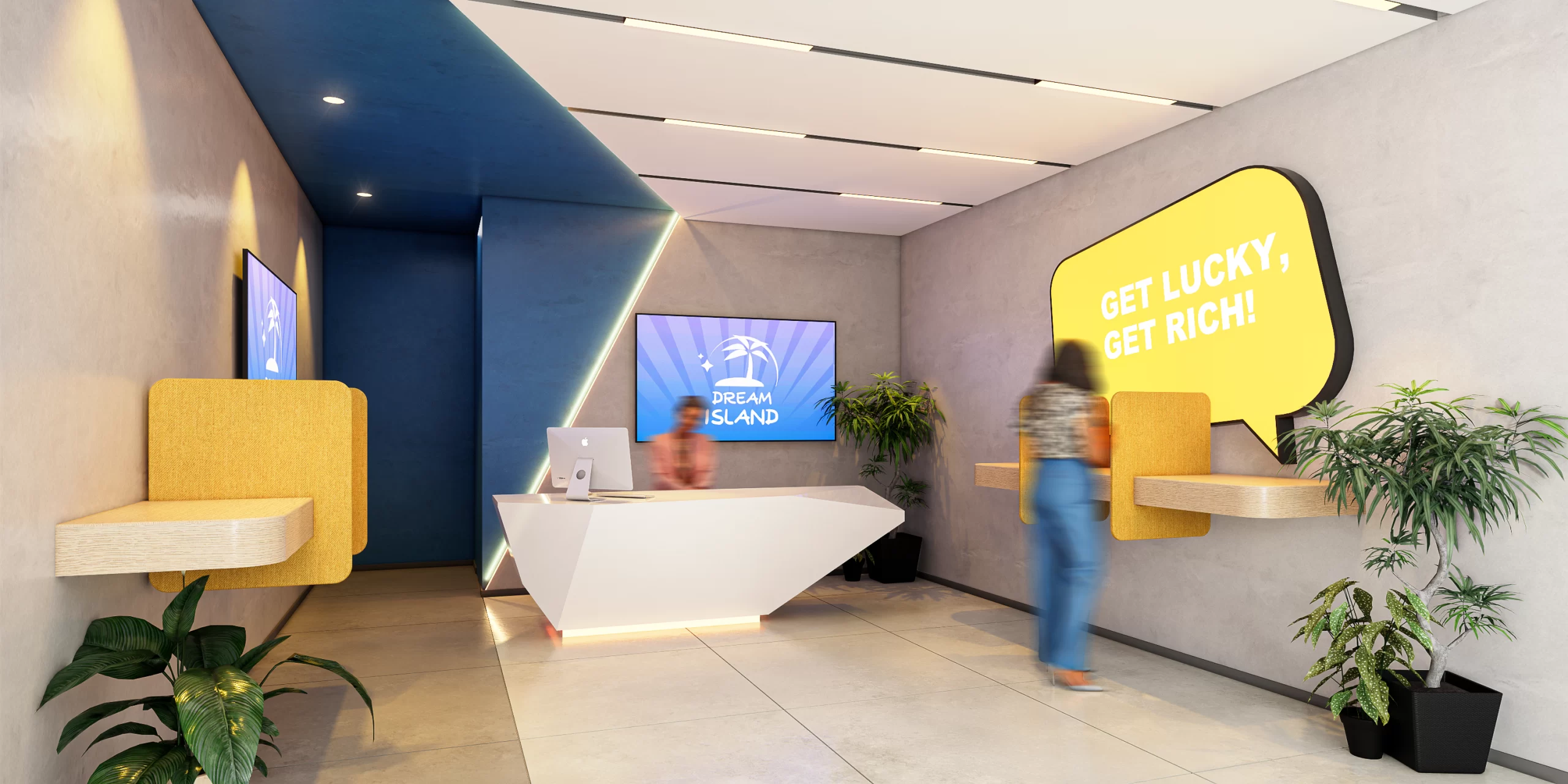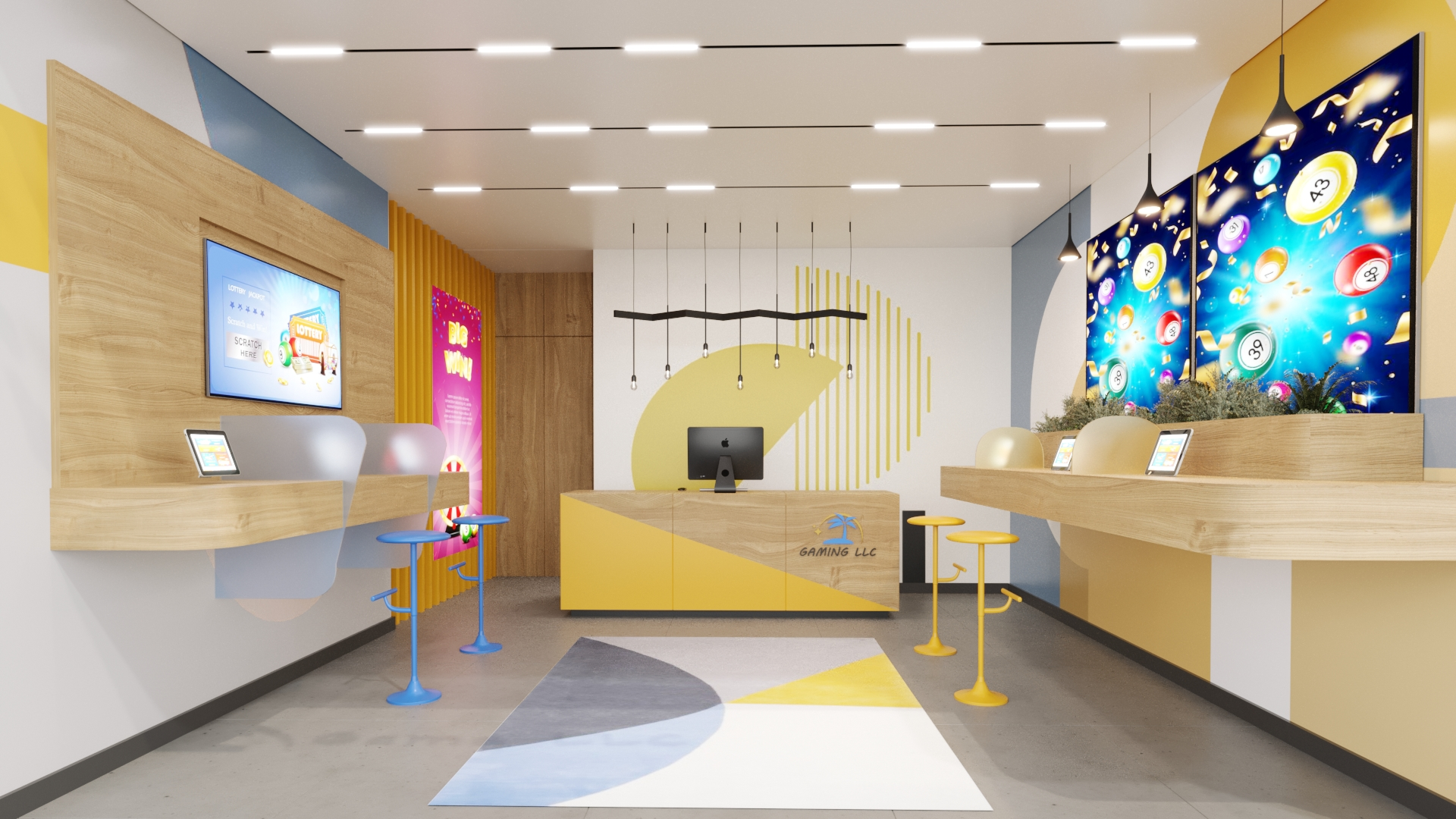 This interior design project for a lottery gaming shop combines functionality, security, and engaging aesthetics to create an inviting and dynamic customer experience. The layout is strategically planned to ensure smooth customer flow, with designated zones for ticket purchases, gaming machines, and customer service. Bold colors, digital displays, and illuminated signage enhance visual excitement and draw attention to key areas. Durable, easy-to-maintain materials are used throughout to support high foot traffic, while comfortable seating and efficient lighting provide a welcoming atmosphere. Security features are subtly integrated to ensure safety without disrupting the user experience. The result is a vibrant, modern space that balances entertainment, accessibility, and operational efficiency.